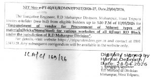 গোপাল সিং, খোয়াই, ২৬ এপ্রিল || তিনদিন যাবত প্রায় বিদ্যুৎহীনতায় খোয়াই। খোয়াই জেলা হাসপাতালও বিদ্যুৎহীনতায় বিপর্যয়ের মুখে। ভ্যাকসিন, টক্সাইড সহ জীবনদায়ী ওষুধ প্রশ্নের মুখে। খোয়াইয়ের বিদ্যুৎ পরিষেবা যেন এক দুর্বিষহ যন্ত্রণার নাম। শনিবার সারাদিন বিদ্যুৎহীন থাকার পর আজ রবিবার সন্ধ্যার Continue reading তিনদিন ধরে অন্ধকারে নিমজ্জিত গোটা খোয়াই শহর: জেলা হাসপাতালের জীবনদায়ী ওষুধ প্রশ্নের মুখে