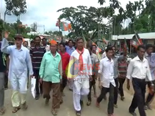 বিশ্বেশ্বর মজুমদার, শান্তিরবাজার, ০২ সেপ্টেম্বর ৷৷ বিজেপি’র উদ্যোগে মনপাথর বাজারে অনুষ্ঠিত হয় এক বিক্ষোভ মিছিল। শান্তির বাজার মহকুমার অন্তর্গত মনপাথর বাজারে শুক্রবার সি পি আই (এম) কর্মী দ্বারা আক্রান্ত হয় বিজেপি কর্মীবৃন্দ। এই অভিযোগে তীব্র নিন্দা জানিয়ে শান্তির বাজার মন্ডল বিজেপির উদ্দ্যোগে মনপাথর বাজারে এক বিশাল বিক্ষোভ মিছিলের আয়োজন করা হয়। এই মিছিলে ব্যাপকহারে বিজেপি কর্মীসমর্থকরা অংশগ্রহন করেন। শনিবারের এই বিক্ষোভ মিছিলকে সাফল্যমন্ডীত করার জন্য ছুটে যান দক্ষিন জেলার বিজেপি’র সভাপতি বিভীষন দাস, বিজেপি।র দক্ষিন জেলার সহ-সভাপতি শ্যামলাল দেবনাথ, শান্তির বাজার বিজেপি।র মন্ডল প্রেসিডেন্ট প্রদীপ দাস, ভৃগুরাম রিয়াং, পরিক্ষিত দের্বমা, মম্ভু মগ ও অন্যান্য নেতৃত্ববৃন্দ। বিক্ষোভ মিছিল শেষে বিজেপি’র দক্ষিন জেলার সভাপতি বিভীষন দাস সংবাদ মাধ্যমের সামনে উনার একান্ত সাক্ষাৎকারে জানান, সি পি আই (এম) পাগল হয়ে গেছে। প্রতিনিয়ত বিজেপি’তে যে পরিমানে লোকজন যোগদান করছো তা দেখে সি পি আই (এম) আজ দিশেহারা। তারা হয়তো জানেনা বিজেপি’র উপর আক্রমন করে বিজেপি’র তীব্র আন্দোলন রোধ করা যাবে না। আগামী ১৮’র নির্বাচনে সি পি আই (এম) হার অবসম্ভাবী । ত্রিপুরার সবকয়টি আসনে বিজেপি বিপুল ভোটে জয়যুক্ত হবেই।