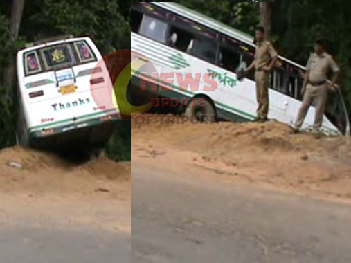 বিশ্বেশ্বর মজুমদার, শান্তিরবাজার, ০৭ সেপ্টেম্বর ৷৷ লাইন চ্যুত হয়ে দুর্ঘটনার কবলে পরল টি আর ০১ এ ১৩ ১৫ নম্বরের একটি যাত্রীবাহী বাস। বৃহস্পতিবার সকল আনুমানিক ৯টা নাগাদ শান্তির বাজার মহকুমার শেষ প্রান্তে হঠাৎ বাজারের পাশাপাশি এলাকায় এসে এই গাড়ীটি নিয়ন্ত্রণ হারিয়ে রাস্তার বাইরে চলে যায়। এতে করে গাড়ীতে অবস্থিত সকল ব্যাক্তি কমবেশি আহত হয়। আহত ব্যাক্তিদের মধ্যে কিছু চিকিৎসার জন্য গোমতী জেলা হাসপাতালে নিয়ে যাওয়া হয়। বাকিদের শান্তির বাজার জেলা হাসপাতালে পাঠানো হয়। জানা যায়, সম্পর্ক নামে এই বাসটি সাব্রুম মহকুমার মনুঘাট থেকে আগরতলার উদ্দ্যেশ্যে রওনা হয়েছিল। মাঝ রাস্তায় এসে দুর্ঘটনার কবলে পরে। ঘটনার খবর পেয়ে শান্তির বাজার মহকুমার এস ডি পি ও চিরঞ্জীত চক্রবর্তী ঘটনাস্থলে পোঁছান। যাত্রীদের অনেকের অভিমত স্টেয়ারিং মিস হয়ে যাওয়াতে তাদেরকে এই দুর্ঘটনার সন্মুখিন হতে হয়েছে।নিয়ন্ত্রণ হারিয়ে দুর্ঘটনার কবলে বাস