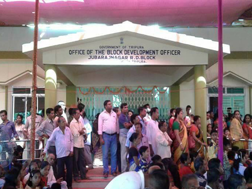আপডেট প্রতিনিধি, আগরতলা, ০৩ নভেম্বর ৷৷ এক আনন্দঘন অনুষ্ঠানের মধ্যদিয়ে জাতি উপজাতির বিপুল সংখ্যক মানুষের উপস্থিতিতে যুবরাজনগর ব্লক অফিসের নব নির্মিত পাকা বাড়ীর উদ্বোধন হল শুক্রবার। প্রদীপ প্রজ্জলন ও ফিতা কেটে নব নির্মিত পাকা বাড়ীর দ্বারোদঘাটন করেন বিধানসভার অধ্যক্ষ রমেন্দ্র চন্দ্র দেবনাথ। অনুষ্ঠানে প্রধান অতিথি হিসেবে পঞ্চায়েত মন্ত্রী মানিক দে, বিশেষ অতিথি হিসেবে গ্রামোন্নয়ন মন্ত্রী নরেশ চন্দ্র জমাতিয়া এবং উত্তর ত্রিপুরা জিলা পরিষদের সভাধিপতি প্রতিমা দাস উপস্থিত ছিলেন। অনুষ্ঠানের সভাপতিত্ব করেন যুবরাজনগর পঞ্চায়েত সমিতির চেয়ারম্যান সমীরণ দাস। নতুন পাকা বাড়ীটি নিরমানে ব্যয় হয়েছে ১ কোটি ২৮ লক্ষ টাকা। গ্রামোন্নয়ন দপ্তর ওয়ি বাড়িটি নিরমান করেছে। ব্লক কার্যালয়ে রয়েছে ১টি কনফারেন্স হল, ব্লক আধিকারিকের কক্ষ, পঞ্চায়েত সমিতির চেয়ারম্যানের কক্ষ, টেকনিক্যাল সেকশন, এম জি এন রেগা সেকশন, পঞ্চায়েত অফিসারের কক্ষ, অ্যাকাউন্ট সেকশন ও ক্যাশ সেকশন।