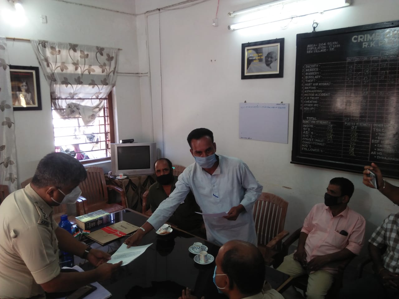 আপডেট প্রতিনিধি, আগরতলা, ০৯ নভেম্বর || উদয়পুর জেলা কংগ্রেসের এক প্রতিনিধি দল জেলা সভাপতি সৌমিত্র বিশ্বাসের নেতৃত্বে আর কে পুর থানার ওসি’র নিকট রাজারবাগ মটর স্ট্যান্ডে বহুল প্রচারিত সংবাদপত প্রতিবাদী কলম পত্রিকা সমাজদ্রোহীরা ছিনতাই করে ধ্বংশসাধন করার সুবিচার চেয়ে স্মারকলিপি প্রদান করে। এই ঘটনা গনতন্ত্রের চতুর্থ স্তম্ভের উপর আঘাত এবং মতপ্রকাশের অধিকারের উপর হস্তক্ষেপ বলে দাবি করেন তারা। এই ঘটনায় যুক্তদের শাস্তির দাবি জানিয়েছে গোমতী জেলা কংগ্রেস। প্রতিনিধি দলে ছিলেন প্রদীপ সরকার, নিত্যগোপাল সাহা, কমল সাহা, বাবুল হোসেন প্রমুখ।