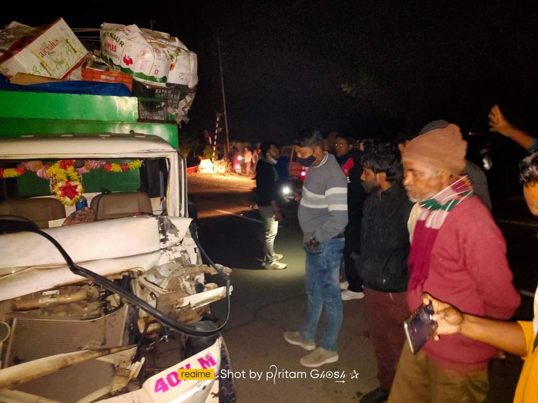 বিশ্বেশ্বর মজুমদার, শান্তিরবাজার, ২০ জানুয়ারী || ফের যান দুর্ঘটনায় প্রান হারালো এক ব্যক্তি। ঘটনা বুধবার রাত আনুমানিক ৯টা ৩০ মিনিট নাগাদ জোলাইবাড়ী বাইপাস রোডে। যান দুর্ঘটনায় ঘটনাস্থলে প্রান হারালো এক ব্যক্তি। আশঙ্কাজনক অবস্থায় ২ জনকে গোমতী জেলা হাসাপাতালে স্থানান্তরিত করা হয়েছে। জানা যায়, টি আর ০৮ বি ১৯৩৩ নম্বরের মালবাহি গাড়ী জোলাইবাড়ী বাইপাস রোডে দাড়িয়ে গাড়ীর গ্লাস পরিষ্কার করছিলো। অপরদিকে গাড়ীর পাশে দাড়িয়ে ছিল টি আর ০৮ সি ৮৩৫২ নাম্বারের স্কুটি। এমতাবস্থায় আগরতলা থেকে আগত টি আর ০৮ বি ১৯০২ নাম্বারের মালবাহী ট্রাক এসে স্কুটির পাশে থাকা দুইজন ব্যক্তি ও টি আর ০৮ বি ১৯৩৩ মালবাহী গাড়ীর চালককে স্বজোরে ধাক্কা দেয়। টি আর ০৮ বি ১৯০২ মালবাহী গাড়ীটি ধাক্কা দেবার পর গাড়ী চালক ঘটনাস্থল থেক পালিয়ে যায়। এই দুর্ঘটনায় টি আর ০৮ বি ১৯৩৩ মালাবাহী গাড়ীর চালক সুব্রত দাস (৪০) ঘটনাস্থলে প্রান হারায়। জানা যায়, সুব্রত দাস সাব্রুম মহকুমার মনুঘাট এলাকার বাসিন্দা। স্কুটিতে থাকা দুই ব্যক্তি জোলাইবাড়ীর এম এল এ পাড়ার বাসিন্দা সুরেন্দ্র ত্রিপুরা (৩২) ও উনার সহধর্মীনি লিলেশ্রী ত্রিপুরা (৩০) গুরুতর আহত হয়। দূর্ঘটনার খবর পেয়ে জোলাইবাড়ীর দমকল বাহিনীর কর্মীরা ঘটনাস্থলে উপস্থিত হয়ে আহত ও নিহতদের জোলাইবাড়ী সামাজিক স্বাস্থ্য কেন্দ্রে নিয়ে যায়। দুর্ঘটনায় আহতদের অবস্থা আশঙ্কাজনক দেখে কর্তব্যরত চিকিৎসক গোমতী জেলা হাসাপাতালে স্থানান্তরিত করে। এই দুর্ঘটনায় সুব্রত দাস মাথায় আঘাতপ্রাপ্ত হবার ফলে মারা যায় বলে জানান জোলাইবাড়ী সামাজিক স্বাস্থ্য কেন্দ্রের চিকিৎসক। সুব্রত দাসের মৃতদেহ বৃহস্পতিবার ময়নাতদন্তের পর পরিবারের লোকজনদের হাতে তুলে দেওয়া হয়।