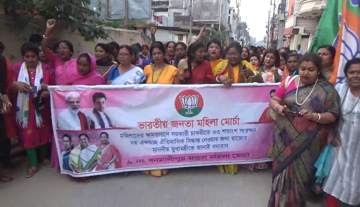 সরকারি চাকুরীতে মহিলাদের ৩৩% সংরক্ষণ ঘোষণা – মুখ্যমন্ত্রীকে শুভেচ্ছা জানিয়ে মহিলা মোর্চার মিছিল