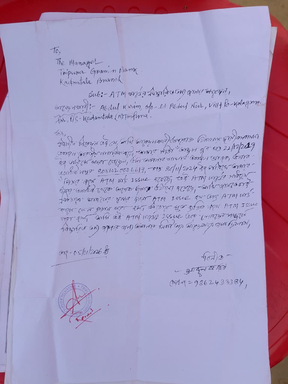 গোপাল সিং, খোয়াই, ০৭ ফেব্রুয়ারি || উত্তর ত্রিপুরার কদমতলা ত্রিপুরা গ্রামীণ ব্যাংক ঘিরে উঠেছে চাঞ্চল্যকর দুর্নীতির অভিযোগ। মৃত এক গ্রাহকের অ্যাকাউন্ট থেকে এটিএমের মাধ্যমে লক্ষাধিক টাকা তুলে নেওয়ার অভিযোগ এনে সরব হয়েছেন তাঁর পরিবারের সদস্যরা। ঘটনায় ব্যাংক ম্যানেজার ও সিইও-র ভূমিকা নিয়ে গুরুতর প্রশ্ন উঠেছে।